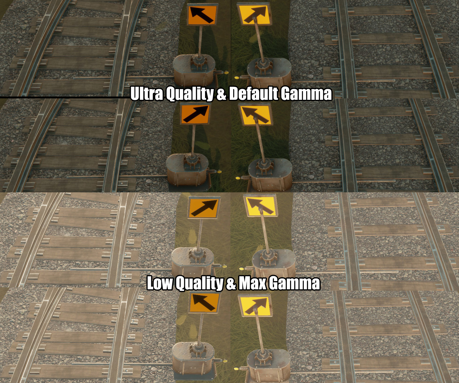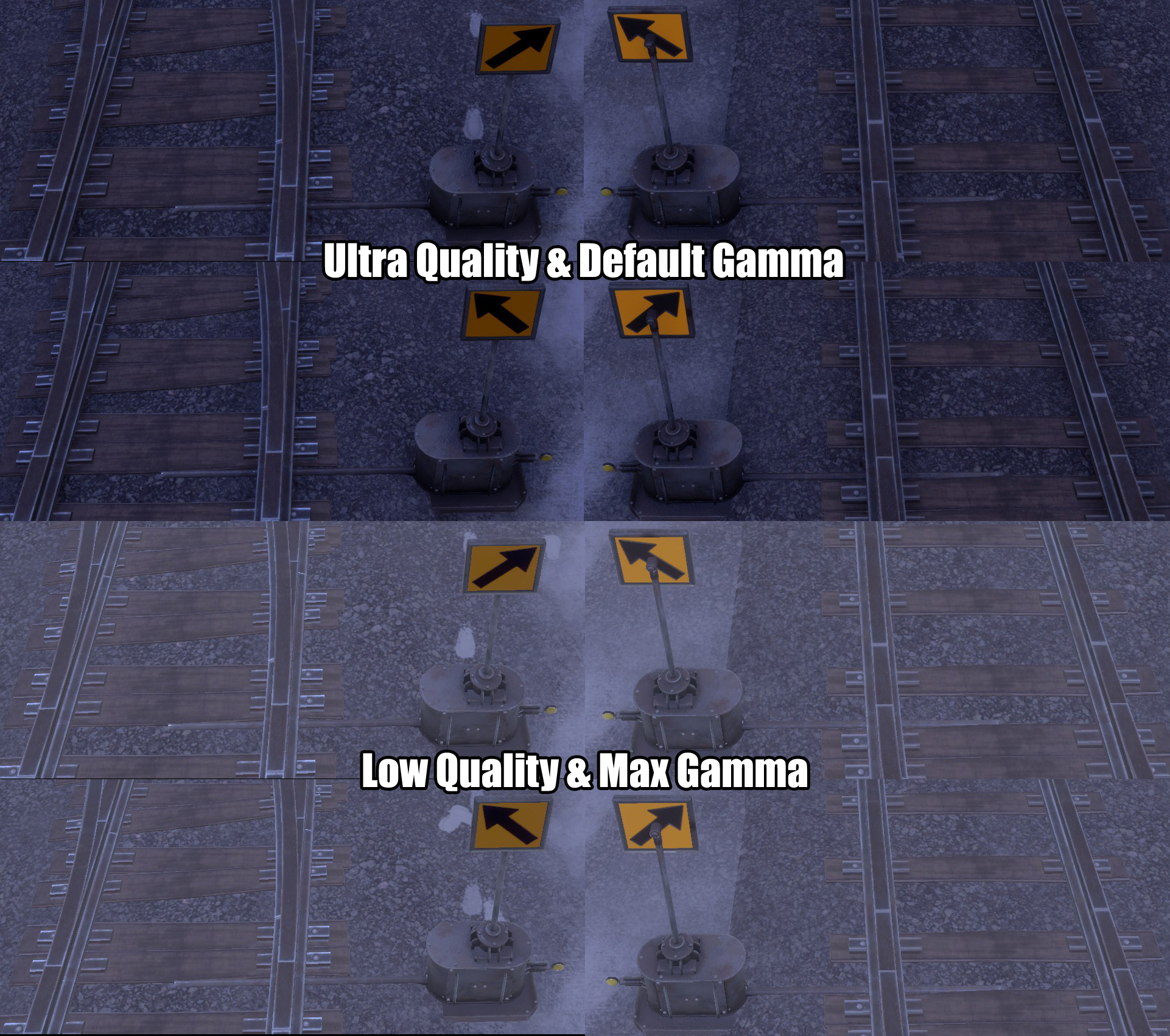Designed to aid players in reducing eye strain at determining which direction the railway semaphore (switch) is pointed, from both the front and rear sides, at greater distances and zoom levels.